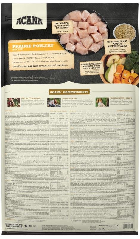ACANA Classics Prairie Poultry to wyjątkowa karma, która wspiera zdrowie, kondycję i witalność Twojego psa, dostarczając mu naturalnych składników w pełni dostosowanych do jego biologicznych potrzeb.