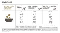 Dlatego proponujemy rozpocząć dawkowanie karmy zgodnie ze schematem poniżej, kontrolując wagę psa, a następnie dostosować porcję do jego potrzeb.