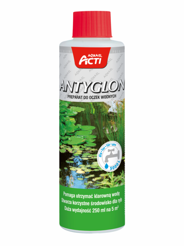 ACTI ANTYGLON to środek wysoce skuteczny, efektywnie i szybko hamujący wzrost glonów osiadłych w oczku wodnym. Ponadto sprawia on, że tego typu roślinność obumiera. Pomaga utrzymać klarowną wode w stawie.