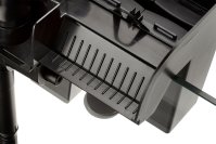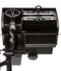 Filtr uruchamia się natychmiast po podłączeniu zasilania – silnik umieszczony pod wodą nie wymaga zalewania, dzięki czemu urządzenie od razu zaczyna działać. Dodatkowym udogodnieniem jest automatyczny restart po przerwie w zasilaniu, co oznacza, że filtr samoczynnie uruchomi się po powrocie prądu. Regulowana teleskopowo rurka zasysająca pozwala dopasować długość i miejsce poboru wody do wysokości akwarium, a duże pokrętło umożliwia płynną regulację wydajności i dostosowanie przepływu do indywidualnych potrzeb.