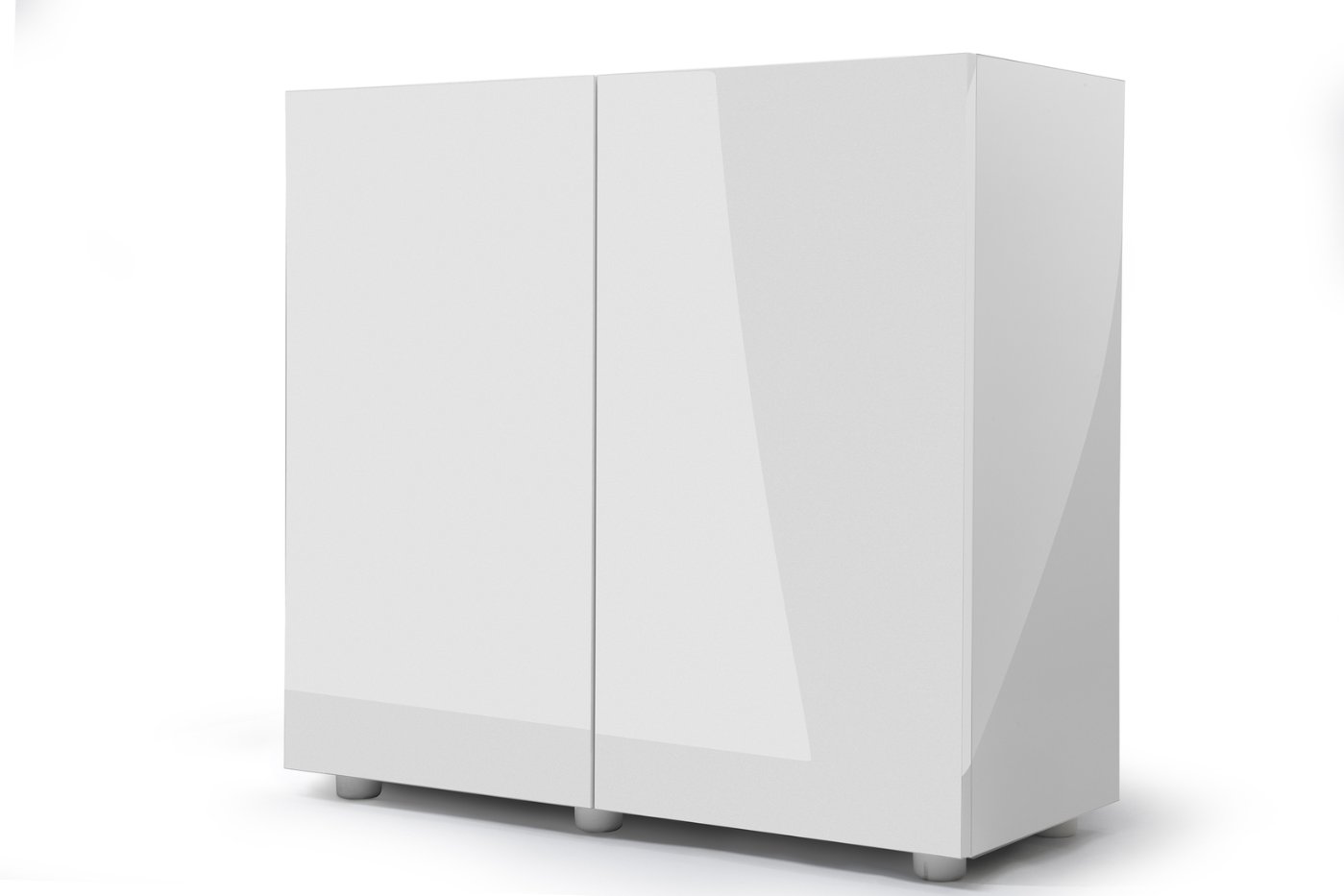 Biała szafka z drzwiczkami pokrytymi akrylem na wysoki połysk.