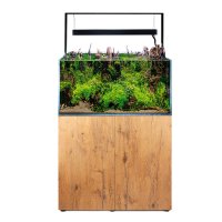 W skład zestawów wchodzi również elegancka dedykowana lampa wyposażona w wymienne moduły oświetleniowe Leddy Tube. Jedną z jej zalet jest możliwość wymiany pojedynczych elementów, a nie całej lampy. Lampa została umieszczona na estetycznym stelażu z regulowaną wysokością. Dodając owijkę na okablowanie, zadbaliśmy o to, by wygląd zestawu był dopracowany w każdym detalu. W zestawie znajduje się także mata pod akwarium.