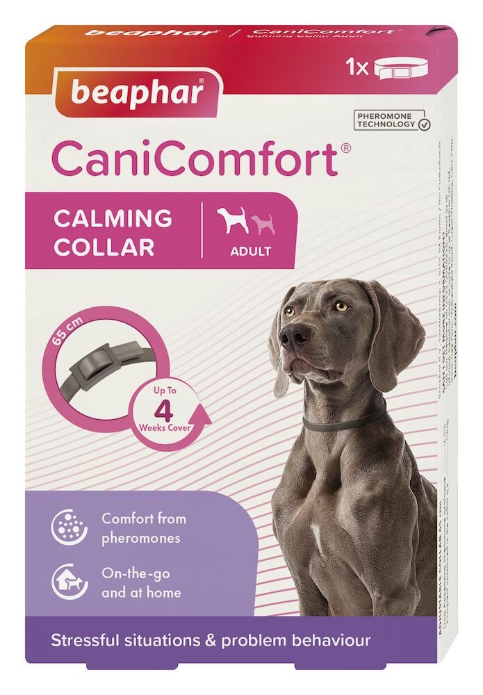 Beaphar CaniComfort® zawiera kopię naturalnego feromonu uspokajającego psa (DAP), który jest rozpoznawany przez psy i pomaga w ograniczeniu niepożądanych zachowań. Obroża jest idealna na krótkoterminowe stresujące wydarzenia, takie jak burze, fajerwerki, podróże, czy wizyty u weterynarza.