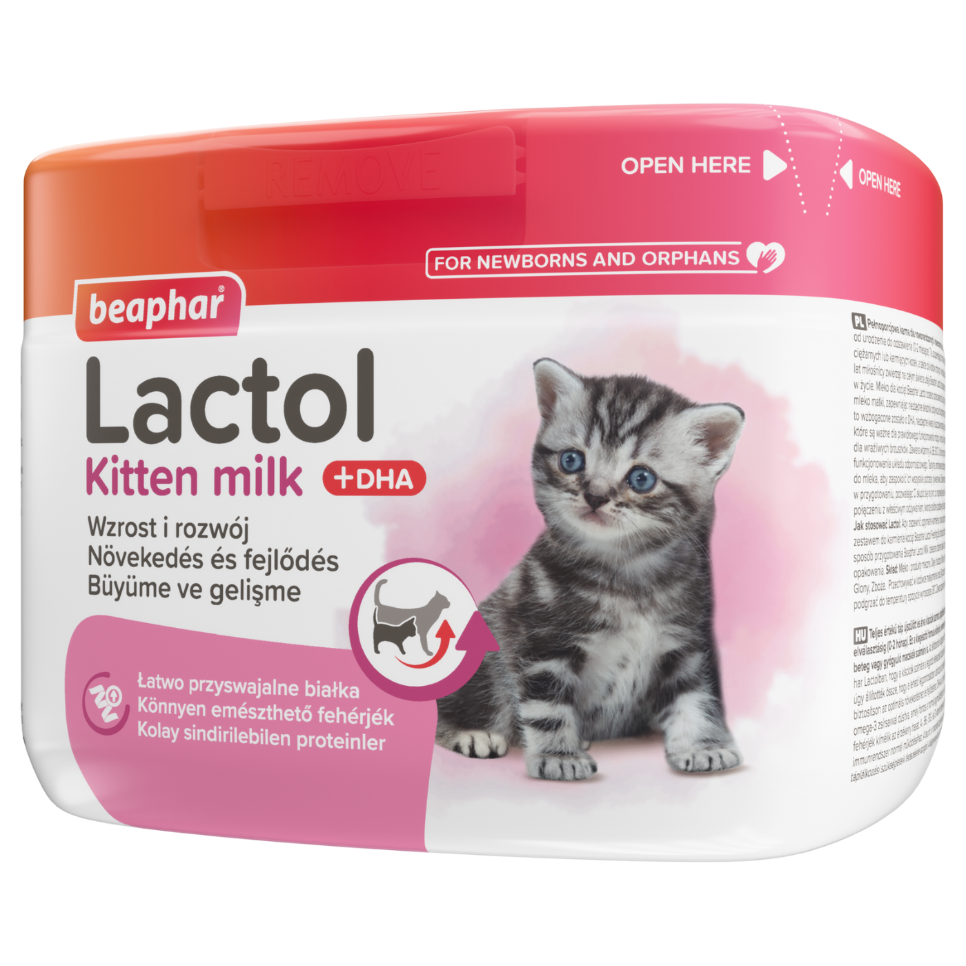 Skład Kitty Milk został zmodyfikowany tak, aby zapewnić najlepsze źródło składników odżywczych niezbędnych dla bardzo młodych kociąt. Kitty Milk dostarcza optymalnie zbilansowane ilości tuszczu oraz wszystkie niezbędne witaminy i minerały , dla jak najlepszego rozwoju młodego organizmu. Preparat został wzbogacony o DHA (NKT Omega 3 naturalnie obecny w mleku kotek). Dzięki specjalnemu procesowi suszenia proszku, białko zawarte w Lactol Kitty Milk jest łatwo przyswajalne, co niesie za sobą znaczące korzyści dla kociąt. Beaphar lactol kitty milk zawiera wiele niezbędnych aminokwasów, witamin i pierwiastków śladowych.