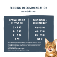 Karma nie zawiera zbóż zawierających gluten, sztucznych aromatów, barwników ani konserwantów. Dzięki temu nadaje się również dla kotów o wrażliwym układzie pokarmowym oraz dla osobników wybrednych, które potrzebują lekkiej, a jednocześnie pożywnej diety.