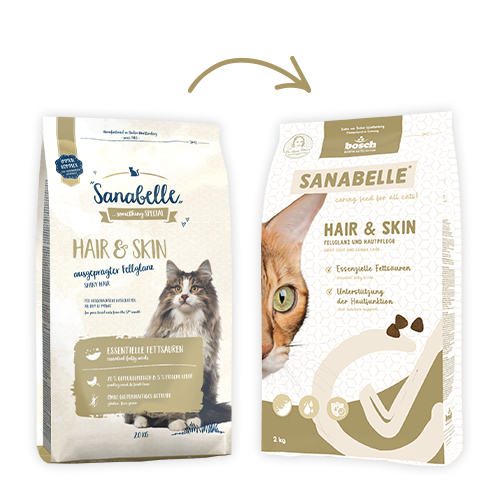 Sanabelle Hair & Skin to pełnowartościowa karma stworzona z myślą o kotach rasowych oraz tych, które biorą udział w wystawach i prezentacjach. Karma została opracowana z dbałością o szczególne potrzeby tych zwierząt, koncentrując się na ich zdrowiu, kondycji skóry i sierści. Zawarte w składzie kwasy tłuszczowe omega-3 i 6 wspomagają zdrową skórę i piękne, błyszczące futro, a regularne stosowanie tej karmy przyczynia się do wzmocnienia odporności kota.