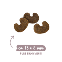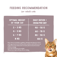Wysokiej jakości mięso drobiowe oraz sproszkowana wątróbka nadają karmie wyjątkowy smak, który chętnie akceptują nawet wybredne koty. Zawarte tauryna i nienasycone kwasy tłuszczowe Omega-3 i Omega-6 wspierają pracę serca, zdrową skórę i lśniącą sierść, a prebiotyki i błonnik dbają o prawidłowe trawienie i florę jelitową.