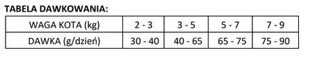 | Waga kota (kg) | Dzienna porcja (g/dzień) |