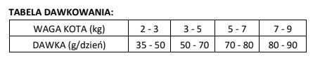 | Waga kota (kg) | Dzienna porcja (g/dzień) |