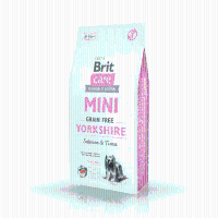 Sucha karma Brit Care Mini Grain Free Yorkshire to produkt stworzony z myślą o dorosłych psach rasy yorkshire terrier. Podstawowymi źródłami białka zwierzęcego są ryby – łosoś i tuńczyk. To sprawia, że karma jest lekkostrawna i bardzo zdrowa. Formuła została opracowana w taki sposób, aby dostarczać niezbędnej dawki energii i wspierać piękny wygląd długiej sierści bez obciążania układu pokarmowego. Wysoki poziom nienasyconych kwasów tłuszczowych pomaga dbać o skórę i sierść psów, a jednocześnie zapobiega powstawaniu stanów zapalnych.