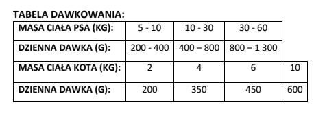 Karmę należy podawać przez okres rekonwalescencji lub do uzyskania odpowiedniej masy ciała.