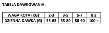 | Waga kota (kg) | Dzienna porcja (g) |