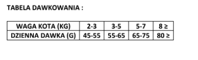 | Waga kota (kg) | Dzienna porcja (g) |