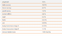 białko surowe 10,6%, tłuszcz surowy 7,3%, popiół surowy 2,7%, włókno surowe 0,4%, wilgotność 78,5%.