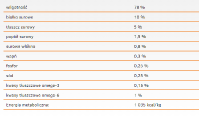 witamina A 800 IU, witamina D3 200 IU, witamina E 120 mg, witamina B1 1 mg, biotyna 0,4 mg, cynk 10 mg, mangan 2,4 mg, jod 0,6 mg, miedź 3,2 mg, żelazo 8 mg.
