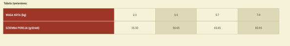 Podawać suchą lub naprzemiennie z mokrą karmą Carnilove. Nową karmę wprowadzać stopniowo przez 7 dni. Kot powinien mieć stały dostęp do świeżej wody.