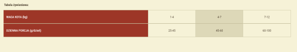 Podawać suchą lub naprzemiennie z mokrą karmą Carnilove. Nową karmę wprowadzać stopniowo przez 7 dni. Kot powinien mieć stały dostęp do świeżej wody.