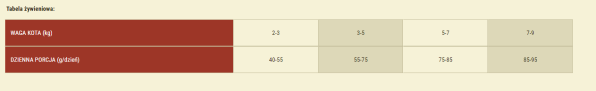Podawać suchą lub naprzemiennie z mokrą karmą Carnilove. Nową karmę wprowadzać stopniowo przez 7 dni. Kot powinien mieć stały dostęp do świeżej wody.