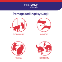 FELIWAY Friends to łatwe w użyciu rozwiązanie łagodzące konflikty pomiędzy kotami mieszkającymi pod jednym dachem i pozwalające uniknąć oznak stresu: walczenia, pogoni, blokowania, wpatrywania się.
