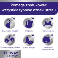 FELIWAY Optimum to najlepsze z rozwiązań, pomocne w łagodzeniu wszystkich typowych oznak stresu, zapewniając spotęgowane uczucie spokoju. Feliway Optimum jest łatwym w stosowaniu produktem, który pomaga stworzyć komfortowe dla kota środowisko domowe. Emituje specjalnie dobraną kombinację syntetycznych kocich feromonów uspokajających, doskonale wyczuwaną przez koty i tylko przez nie. Dla ludzi i psów zapach jest niewyczuwalny.