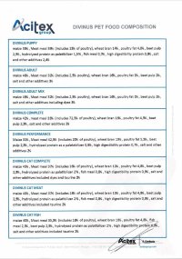 Divinus Cat Fish – pełnowartościowa karma sucha dla dorosłych kotów. Zawiera ziarna zbóż, mięso i produkty odzwierzęce, oleje i tłuszcze, ryby i produkty rybne, substancje mineralne, produkty roślinne oraz drożdże. Karma zapewnia wszystkie niezbędne składniki odżywcze, witaminy i minerały dla zdrowego funkcjonowania kota.