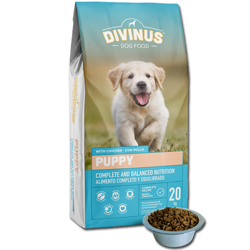 Divinus Puppy to wysokiej jakości karma dla szczeniąt, stworzona z myślą o psach w pierwszym roku życia. Duża zawartość mięsa i produktów pochodzenia zwierzęcego gwarantuje wyjątkową smakowitość karmy, a zbilansowana receptura zapewnia łatwe przyswajanie składników odżywczych. Karma wspiera rozwój szczeniąt dzięki dodatkom witamin i minerałów, a regularne stosowanie wpływa korzystnie na kondycję i wygląd sierści, nadając jej miękkość i połysk.