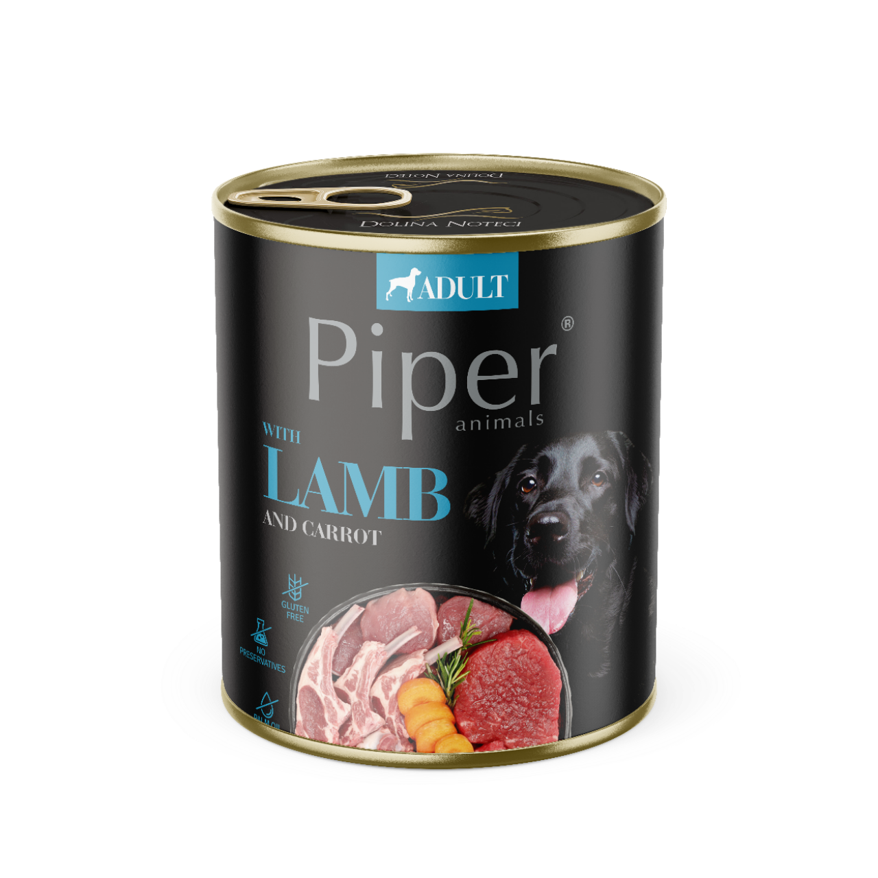 Dolina Noteci Piper dla Psa Jagnięcina z Marchewką to pełnowartościowa karma, która dostarcza psu wysokiej jakości białka, bogatego w aminokwasy takie jak lizyna i leucyna. Jagnięcina stanowi cenne źródło żelaza i miedzi, które wspierają odporność organizmu oraz prawidłową funkcję krwi i układu krążenia.