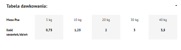 | Waga psa | Dzienna ilość saszetek |