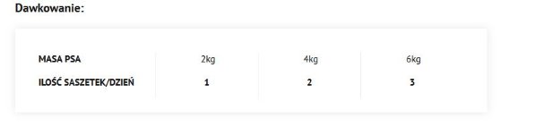| Ilość saszetek/dzień | 2 | 2,5-3 | 3-3,5 | 3,5-4 | 4 |