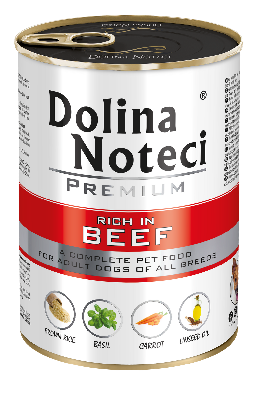 Karma Dolina Noteci PREMIUM bogata w wołowinę dla dorosłych psów wszystkich ras, to źródło lizyny, leucyny i izoleucyny. Dodatkowo wysoka zawartość metioniny i cystyny w mięsie wołowym zmniejsza konieczność uzupełniania tych aminokwasów poprzez dodatek produktów zbożowych. Wołowina i jej surowce stanowią doskonałe źródło selenu, żelaza oraz miedzi – składników mineralnych odgrywających istotną rolę w pobudzaniu funkcji obronnych organizmu, jak i stymulacji właściwości przeciwutleniających płynów ustrojowych.