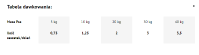 | Ilość saszetek/dzień | 0,75 | 1,5 | 2,5 | 3 | 4 |