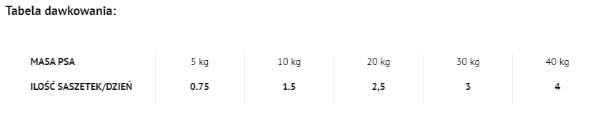 | Masa psa | 5kg | 10kg | 20kg | 30kg | 40kg |