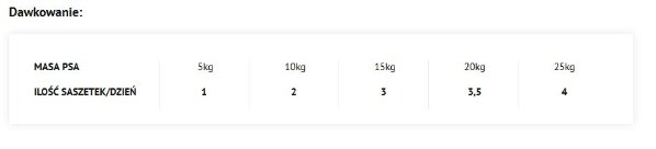 | Ilość saszetek/dzień | 1 | 2 | 3 | 3,5 | 4 |