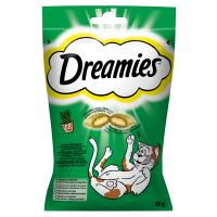 DREAMIES 60 g to pyszne, chrupiące paszteciki z miękkim nadzieniem i nutą kocimiętki, które zachwycą Twojego kota. Opracowane przez specjalistów ds. żywienia i lekarzy weterynarii, wzbogacone minerałami i witaminami, wspierają zdrowie i witalność kota. Te przysmaki nie zawierają sztucznych dodatków smakowych, a każdy pasztecik zawiera tylko 2 kcal, co czyni je doskonałą przekąską. Posiadają atrakcyjny aromat, który przyciąga kota do miseczki.