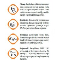 Chondroityna, glukozamina i idealny stosunek wapnia i fosforu odżywiają rozwijający się aparat ruchu i działają zapobiegawczo przeciw powstawaniu problemów ze stawami w późniejszym czasie.