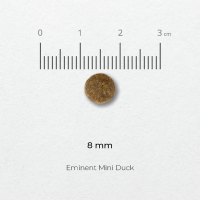 Karma Eminent Mini Adult DUCK zawiera 85% białka pochodzenia zwierzęcego, które charakteryzują się wysoką strawnością na poziomie blisko 90%.
