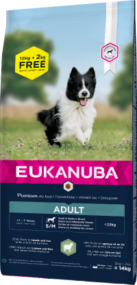 Eukanuba Adult Small&Medium Breed Rich In Lamb & Rice 12kg + 2kg GRATIS
