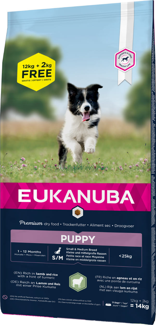 Eukanuba Puppy&Junior Small/Medium Lamb&Rice 12kg +2kg GRATIS