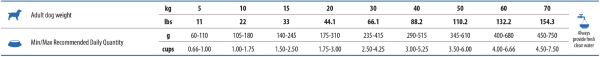 Dla psów o wadze 3 kg: ok. 50-55 g dziennie