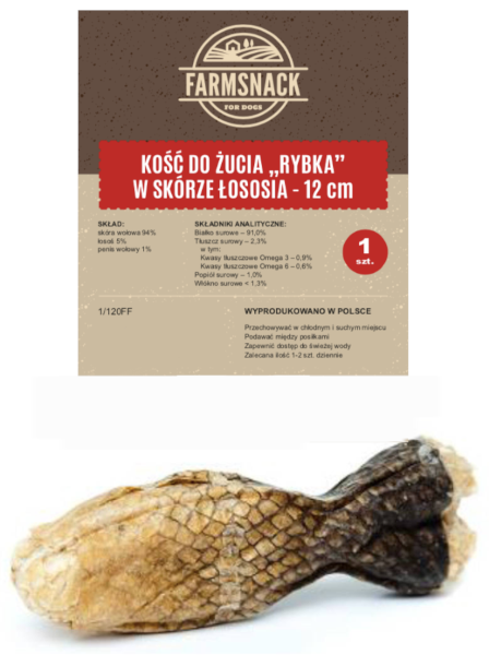 FarmSnack Kość Do Żucia Rybka W Skórze Łososia 12cm - Opis Produktu