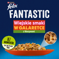 Dania Felix Fantastic wyglądają, pachną i smakują tak przepysznie, jak jedzenie, które mógłbyś przygotować sam. Każda receptura zawiera delikatne kąski z pysznymi warzywami w soczystej galaretce, którym Twój kot nie będzie mógł się oprzeć! "A to nie wszystko!
