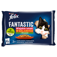 Felix Fantastic zawiera wszystkie składniki, aby zapewnić kotu zdrowie, witalność oraz długie życie. Do produkcji zostały użyte wyłącznie sprawdzone, wysokiej jakości surowce, mięso z kontrolowanych farm, z hodowli zgodnych z rytmem i warunkami życia właściwymi dla danego gatunku, spełniające normy spożywcze pokarmu przeznaczonego dla ludzi. Praktyczne woreczki zapewniają niepowtarzalną świeżość i zapach karmy.