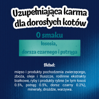 Mix przysmaków o smaku łososia, ryby dorszowatej (mintaja) i pstrąga dla kotów.