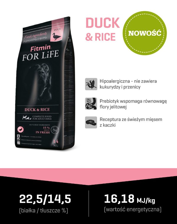 Fitmin For Life Duck & Rice 14kg - Opis Produktu