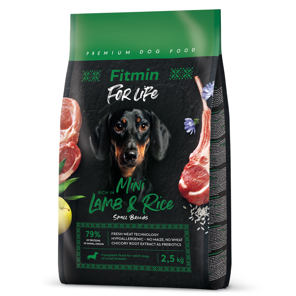 Fitmin For Life Lamb&Rice Mini 2,5 kg to hipoalergiczna karma pełnoporcjowa dla psów małych ras, zawierająca świeże mięso jagnięce i drobiowe. Karma nie zawiera kukurydzy ani pszenicy, wspiera zdrowie układu pokarmowego, serca, naczyń krwionośnych i mózgu.