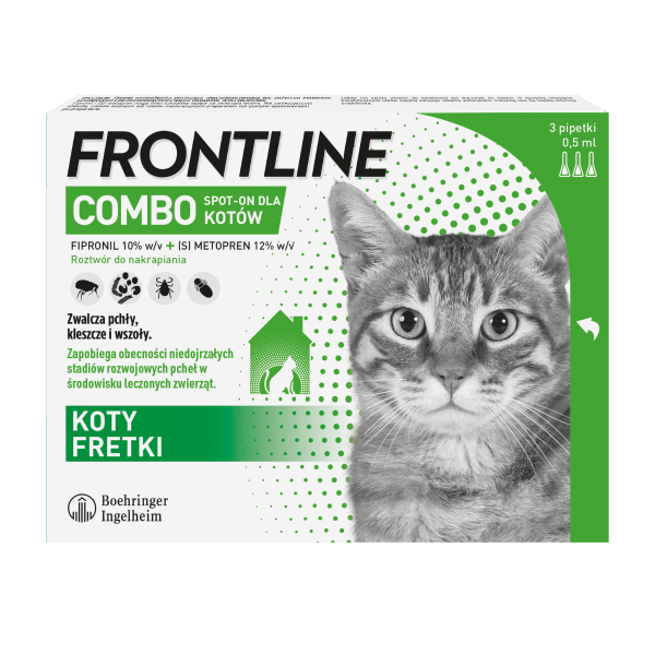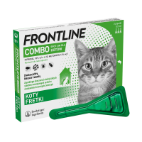 FRONTLINE COMBO dla kotów powyżej 8 tygodni i 1kg masy ciała, to szybkodziałający, długotrwały i wodoodporny produkt leczniczy do zwalczania pcheł i kleszczy. Jedna łatwa aplikacja zapewnia miesięczną ochronę.