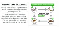 Do zwalczania inwazji wyłącznie pcheł lub w inwazjach mieszanych z kleszczami i/lub wszołami. FRONTLINE Combo Spot-On jest połączeniem dwóch substancji czynnych, które działając wspólnie, eliminują wszystkie stadia rozwojowe pchły na każdym etapie jej cyklu rozwojowego. Zabezpiecza to zwierzęta przed kolejnymi zakażeniami.