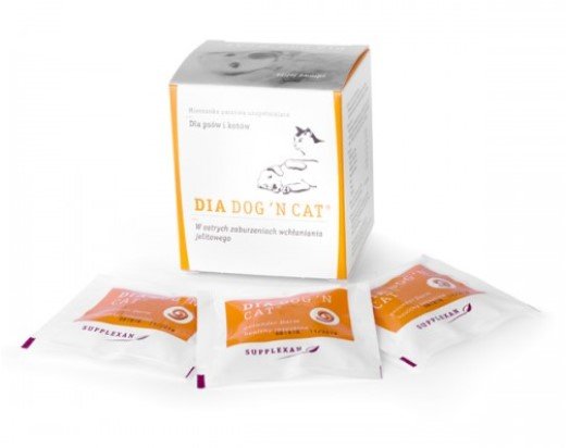 GEULINCX DiaDog'N'Cat preparat weterynaryjny dla psów i kotów. Diadog’n cat jest kompleksowym produktem dietetycznym opracowanym specjalnie do podawania w czasie i bezpośrednio po ostrych zaburzeniach resorpcji w jelitach. Zastosowane naturalne składniki zostały dobrane zgodnie z obecną wiedzą o regulacji zaburzeń procesów trawienia.