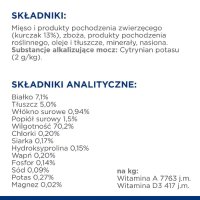 - Mięso i składniki pochodzenia zwierzęcego (kurczak 13%)