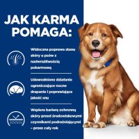 Zawarte w karmie niezbędne nienasycone kwasy tłuszczowe (NNKT), w tym EPA i DHA, pomagają utrzymać zdrową skórę, wspierają regenerację naskórka i poprawiają kondycję sierści. Formuła dodatkowo łagodzi świąd i stany zapalne skóry, a dzięki lekkostrawnym składnikom wspiera również prawidłowe funkcjonowanie układu pokarmowego.